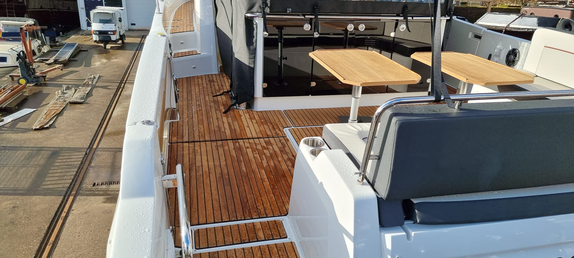 Goed en regelmatig onderhoud voorkomt uitdroging, scheurvorming en onnodige slijtage van het hout. Door teak professioneel te reinigen en correct te behandelen blijft de natuurlijke structuur behouden en gaat het dek aanzienlijk langer mee. Bij Schuurman Total Boat Care zorgen wij ervoor dat teak zijn karakter en kwaliteit behoudt, seizoen na seizoen.